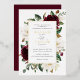 Invitation En Aluminium Floral Bourgogne Blanc Élégant Frame Or
