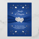 Ce faire-part de mariage romantique a de véritables arcs floraux en feuille d'argent au-dessus et au-dessous d'un ruban bleu royal IMPRIMÉ et simulé parties scintillant d'argent et broche cardiaque à joint cristal au centre d'un arrière - plan bleu. Les noms du couple heureux apparaissent en blanc au-dessus du ruban, avec le verset personnalisable au-dessous du ruban qui dit : "Deux vies, deux coeurs, unis ensemble par l'amitié, unis pour toujours dans l'amour". Le côté arrière de l'invitation est gris avec un rouleau décoratif bleu royal et un cadre fleuri autour du libellé en bleu avec la même paire de coeurs doubles au fond entre les arcs fleuris. Des détails RSVP sont également disponibles à l'arrière de l'invitation, ce qui en fait une faire-part de mariage abordable et luxueuse qui saura enchanter vos invités mariages.