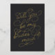 Demandez à vos meilleures filles de se tenir avec vous avec ces belles cartes. Caractéristiques de design "Will you be my bridesmaid" en écriture de feuille d'or embellie typographie avec un coeur subtil travaillé dans le design, sur un arrière - plan noir doux. Ajoutez un message personnalisé au dos en écriture manuscrite moderne et en écriture serif classique.