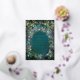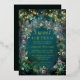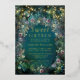Une illustration aquarelle fantaisiste de feuillage luxuriant en vert émeraude, mauve et violet, scintillant de lumières féeriques et de poussière magique, décore cette invitation Sweet 16 printemps été automne avec un thème de forêt enchantée qui présente également un cadre de roses délicates en rose, violet et mauve. Le texte, ainsi que les lumières, ont été produits avec de la véritable feuille d'or. Une invitation élégante et moderne pour un seizième anniversaire de conte de fées. Parfait pour les filles et les familles qui adorent le cadre de la forêt de conte de fées, le thème de la forêt ou du jardin féerique et le vert émeraude, le mauve et l'or.