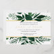 Notre faire-part de mariage Wild Forest au format paysage encadre vos détails mariages avec une bordure supérieure et inférieure de feuillage d'aquarelle dans les tons hivernaux de la forêt et le vert chasseur. Un choix moderne mais bio pour les mariages d'hiver ou de printemps, avec des botaniques d'aquarelle peintes de façon complexe et des garnitures en feuille d'or.