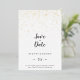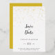 Ce mariage de confetti d'or sauver la date de l'invitation en feuille d'or est parfait pour un mariage simple et élégant. Le design présente de véritables confettis de parties scintillant en feuille d'or à la texture surélevée, sur un arrière - plan blanc à la calligraphie gris foncé contrastée. QSD111