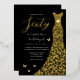 Invitation En Aluminium Gold Foil Heart Gown Noir 60e fête d'anniversaire