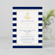 Ce design d'ancre nautique classique avec rayures bleu marine et blanc, reçoit une touche d'élégance avec une véritable feuille d'or pour l'ancre, le cadre et le texte. Impressionnez votre hôte avec l'élégance intemporelle de ce faire-part de mariage bleu marine et or nautique !