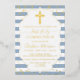 Gold Foil Photo Dusty Blue Stripes Première communion Foil Invitation