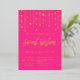 Invitation de sweet sixteen rose et or chaud avec un script tourbillonnant et des étoiles d'or. Chaud rose doux 16 invitation avec feuille d'or.