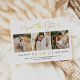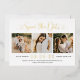 Papier doré moderne, mariage noir et blanc enregistrer la date faire-part cartes comprennent un collage de trois photos de fiançailles carré et un design de typographie élégant avec script de calligraphie chic et un accent cardiaque. Le texte personnalisé simple et élégant qui peut être entièrement personnalisé avec la date mariage numérique, les noms de mariée et de mariée, lieu de cérémonie, site du mariage, et l'invitation formelle à suivre le libellé.