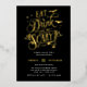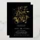 Avec les mots "Mangez, Buvez et Soyez Effrayant" dans une feuille d'or brillante et style typographique rétro et ornés de chauves-souris, lune, filets et une petite araignée sur NOIR, ces invitations de fête d'Halloween sont parfaites pour invitation vos amis et votre famille! Personnalisez avec les détails de votre fête d'Halloween en dessous en lettres blanches sur un arrière - plan noir. Les couleurs sont changeantes !