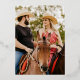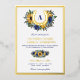 Tournesol et cheval à thème feuille d'or faire-part de mariage en blanc, jaune et bleu. Faire-part de mariage monogramme en fer à cheval avec détails de feuille d'or, tournesols, fleurs en bleu avec verdure et brindilles de baies. Personnalisez avec une photo à l'arrière. Un fer à cheval avec des bordures de feuille d'or, des tournesols et une photo à l'arrière. Faire-part de mariage de tournesol avec monogramme en fer à cheval.