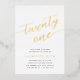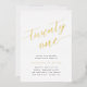Célébrez son anniversaire d'étape avec ces invitations chic à la fête de 21e anniversaire avec "vingt et un" en écriture manuscrite en feuille d'or moderne. Personnalisez avec les détails de votre fête en dessous. Un choix inoubliable et luxueux pour fabuleuses fêtes du 21e anniversaire.
