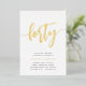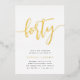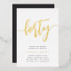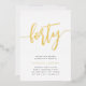 Célébrez son anniversaire d'étape avec ces invitations chic à la fête de 30e anniversaire avec "quarante" en écriture manuscrite en feuille d'or moderne. Personnalisez avec les détails de votre fête en dessous. Un choix inoubliable et luxueux pour de fabuleuses célébrations du 40e anniversaire.