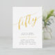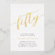 Célébrez son anniversaire d'étape avec ces invitations chic à la fête du 50e anniversaire avec "cinquante" en écriture manuscrite en feuille d'or moderne. Personnalisez avec les détails de votre fête en dessous. Un choix inoubliable et luxueux pour de fabuleuses célébrations du 50e anniversaire.