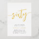 Célébrez son anniversaire d'étape avec ces invitations chic à la fête du 60e anniversaire avec "soixante" en écriture manuscrite en feuille d'or moderne. Personnalisez avec les détails de votre fête en dessous. Un choix inoubliable et luxueux pour de fabuleuses célébrations du 60e anniversaire.