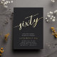 Célébrez son anniversaire d'étape avec ces invitations chic à la fête du 60e anniversaire avec "soixante" en écriture manuscrite en feuille d'or moderne. Personnalisez avec les détails de votre fête en dessous. Un choix inoubliable et luxueux pour de fabuleuses célébrations du 60e anniversaire.