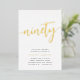 Célébrez son anniversaire d'étape avec ces invitations chic à la fête du 90e anniversaire avec "quatre-vingt-dix" en écriture manuscrite en feuille d'or moderne. Personnalisez avec les détails de votre fête en dessous. Un choix inoubliable et luxueux pour de fabuleuses célébrations du 90e anniversaire.