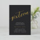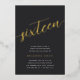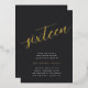 Célébrez son anniversaire d'étape avec ces invitations chic à la fête de 16e anniversaire avec "seize" en écriture manuscrite en feuille d'or moderne. Personnalisez avec les détails de votre fête en dessous. Un choix inoubliable et luxueux pour fabuleuses fêtes du 16ème anniversaire.