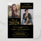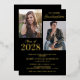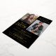 Réelle invitation à la fête de remise de diplômes conjointe avec un arrière - plan noir élégant qui peut être changé à n'importe quelle couleur, photos des deux diplômés, et un élégant modèle de double célébration en feuille d'or facile à personnaliser. REMARQUE : Le pétrole peut être changé en or argenté ou rose.