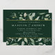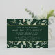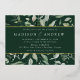 Elégantes invitations de mariage botanique avec aquarelle verte et feuille d'or bordant vos détails mariages avec un arrière - plan vert foncé. Les invitations de mariage verdoyantes modernes s'inversent pour montrer un arrière - plan vert solide. Conçu pour coordonner avec notre collection de mariages de verdure Abondante.