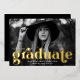 Invitations élégantes à la fête de remise de diplômes avec la photo horizontale du diplômé avec "diplômé" en gras feuille or. Personnalisez l'invitation de la fête de remise de diplômes en photo en ajoutant le nom du diplômé, l'année de remise de diplômes et l'école. Les invitations de la fête de graduation de feuille d'or s'inversent pour afficher les détails de votre fête.