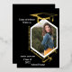 Votre photo dans un cadre hexagonal avec tableau de mortier en feuille d'or et diplôme sur un arrière - plan noir pour une invitation de remise de diplômes. Crédit photo : Photographie © Storytree Studios, Stanford, CA