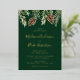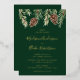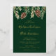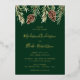 Invités Invitations à votre mariage d'hiver avec nos belles invitations de mariage Watercolor Pinecone. Les invitations comportent une bordure supérieure de cônes de pin d'aquarelle brune et de branches de pin vert sur un arrière - plan vert de forêt. Personnalisez les invitations au mariage du cône de pin en ajoutant vos noms dans un script moderne de calligraphie de feuille d'or et les détails ci-dessous. Les invitations se retournent vers un arrière - plan vert de forêt solide. Parfait pour les mariages d'hiver et de vacances. Conçu pour être coordonné avec notre collection de mariages à cônes de pin d'hiver Watercolor.