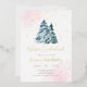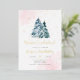 Célébrez le premier anniversaire de votre bébé avec cette invitation d’anniversaire d’hiver rose pastel et or, qui comprend une forêt de pins d’aquarelle et des flocons de neige dans votre choix de feuille d’or argent, or ou rose. Avec élégante calligraphie manuscrite.