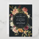 Notre jardin floral moderne Moonlight Garden économisez les images de la carte de date vos principaux détails mariages, y compris la date et l'emplacement, à l'intérieur d'une luxuriante bordure botanique de maman rose aquarelle, feuilles verts et feuillage. Des teintes d'automne poussiéreuses de bordeaux, marsala, rougissement et ivoire pop contre un arrière - plan noir doux aux accents dorés. Personnalisez avec vos noms, date mariage, emplacement et site Web mariage en utilisant les champs fournis.