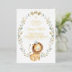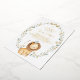 famille d'Invitations et amis à votre événement bautizo avec cette insigne doré personnalisable pressé bautizo invitation. Il présente des illustrations d'aquarelle d'un prix de bébé lion mignon et de couronne de feuillage avec motif assorti. Personnalisez en ajoutant le nom, la date, l'heure, le lieu et d'autres détails de l'événement. Cette invitation au baptême de lion est parfaite pour les baptêmes de bébé garçon. Cette invitation à baptiser de feuille d'or est disponible en d'autres couleurs de feuille.