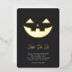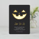 Une amusante invitation à la fête d'Halloween pour les adultes, avec un visage de jack o'lanterne brillant en feuille d'or, avec "Let's get lit" en écriture rétro script. Personnalisez avec les détails de votre fête en dessous.