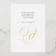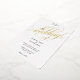 Cette faire-part de mariage exquise présente un design de calligraphie or raffiné sur un arrière - plan blanc immaculé, exubérant sophistication et charme intemporel. Le script, très fluide, apporte une touche élégante, ce qui le rend parfait pour les mariages formels et luxueux. La police serif classique complète la typographie dorée, créant une esthétique équilibrée et polie. L'arrière de l'invitation comprend un détail élégant @ monogram et une option RSVP en ligne, permettant aux clients d'accéder facilement aux détails du mariage via le lien fourni sur le site Web. Ce design minimaliste et opulent s'inscrit dans une palette de thèmes mariages, du moderne et chic au vintage et traditionnel. Entièrement personnalisable, cette invitation est disponible dans des finitions papier de qualité supérieure, y compris le matte, le lin et la perle shimmer, assurant une sensation de luxe pour votre journée spéciale.