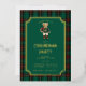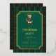 This green tartan party invitation has a cute preppy bear with a sweater you can personalize with your initial. All the party details and the notched frame are in gold foil. The back features a coordinating green tartan pattern.