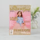 Mettez votre diplômé de maternelle sur la couverture de leur propre glam de parties scintillant Miss Kinder Grad magazine. Notre design intègre un grand espace réservé aux images de la catégorie de magazine pour la photo de votre propre groupe. La tête de maquette du magazine "Miss Kinder Grad" crée le nom du magazine. Vous pouvez facilement changer la couleur de la tête de masque pour que vous puissiez choisir celle qui fonctionnera pour votre photo. Notre message d'appel audacieux est parfait pour présenter l'année, l'école, le nom et les détails de la fête. Conçu avec une parties scintillant d'or gouttes de revêtement design. Nous avons également incorporé un code barre pour améliorer encore plus ce fun glam magazine grad party design. **notez que tout le texte peut facilement être modifié selon vos préférences.** Conception originale par Moodthology Papery.