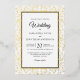 Le design présente une bordure élégante de vigne feuillue en feuille d'or sur fond blanc. Le design combine un texte élégant en script et serif.