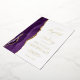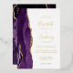 Le bord gauche de cette élégante faire-part de mariage moderne est orné d'une bordure d'aquarelle violette ornée d'une parties scintillant en faux or. Le texte personnalisable combine écriture manuscrite, copperplate et polices italiques en feuille d'or réelle sur un arrière - plan blanc. L'envers est assorti d'une agate violette et dorée.
