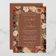 Piège à somptueux tons terre, cet élégant faire-part de mariage fleuri ou les mariages d'automne ou d'hiver présente vos détails encadrés de roses d'aquarelle, de mamans et de verdure dans des couleurs d'automne rustiques incluant pêche, ivoire, roux, bordeaux et vert. La garniture en feuille d'or complète la recherche d'une touche luxueuse.