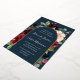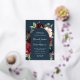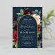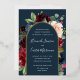 Notre faire-part de mariage Radiant Bloom entoure vos détails de mariage avec une arche de fleurs d'aquarelle peintes en marsala bordeaux, rose rousse et bleu marine, avec feuillage botanique vert et feuilles d'eucalyptus. Un beau choix de couleurs luxuriantes et saturées pour les mariages d'automne ou d'hiver, avec des garnitures luxueuses en feuille d'or.