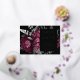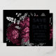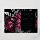Ce mariage élégant et maussade Save the Date propose un bouquet floral luxuriant et romantique en rouge bordeaux avec fausse feuille argent et feuillage parties scintillant sur un arrière - plan noir. Customisez le véritable texte de feuille d'argent dans des polices de style sur un rectangle noir, et ajoutez l'URL de votre site Web mariage au dossier noir solide.