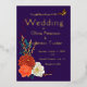 Invitation En Aluminium Mariage d'Automne Monarch Floral Pourpre Or
