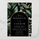 Invitations de mariage élégantes avec vos détails mariages nichés à l'intérieur d'un cadre en papier doré et noir voûté entouré d'eucalyptus, de fougères et d'autres riches verdure. Les invitations de mariage de l'arc botanique se retournent vers un arrière - plan vert foncé et solide. Conçu pour coordonner avec notre collection de mariages de verdure Abondante.