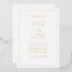 Présentant notre design de faire-part de mariage exquis, avec de vraies lettres d'or sur un arrière - plan blanc immaculé. Cette invitation luxueuse dégage élégance et raffinement, ce qui en fait un lieu idéal pour tout thème mariage. Le texte doré chatoyant contraste magnifiquement avec la toile de fond blanche, créant un look intemporel et classique. Idéale pour les mariages de haut standing et de bonne tenue, cette invitation ajoute une touche de glamour et de raffinement à votre journée spéciale. Customisez avec vos données personnelles pour créer une invitation unique et inoubliable que vos invités apprécieront.