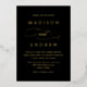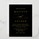 Faire-part de mariage simple et classique avec vos noms et les détails mariages affichés en feuille d'or avec accents de script de calligraphie sur un arrière - plan noir. L'arrière de la faire-part de mariage en feuille d'or est décoré de treillis noir et blanc. Le design s'harmonise avec notre collection de mariages bien-aimés.