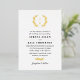 Elégante invitation de mariage dans une feuille d'or et la conception de typographie noire avec un monogramme de couronne de laurier et de belles polices. Faire-part de mariage typographique avec un monogramme verdoyant et de belles polices. Faire-part de mariage en feuille d'or monogramme avec un design stylisé typographique et verdure.