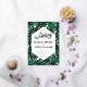 Cette faire-part de mariage tropicale est décorée dans des tons verts et blancs. Une police de script or mignonne est utilisée pour le titre et les noms du couple, et dans sans-serif est les détails de l'événement, y compris l'emplacement, la date, l'heure et RSVP. L'arrière - plan dispose d'un hexagone avec une bordure en feuille d'or et de feuilles de palmiers verts pour un style estival tropical. ・ ・ ・ Pour plus de suites mariages, visitez ma boutique Zazzle.com/EventsByJessicaAmber ・ ・ Pour les commandes sur mesure, envoyez-moi un message sur Zazzle