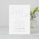 Modern Script Faire-part de mariage Suite : Save the Date Card Ce titre de design "Save the Date" en véritable feuille d'argent police de script moderne avec détails mariages en vrai feuille d'argent police sans serif moderne sur arrière - plan blanc.