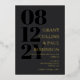 Faire-part de mariage de typographie élégante en gris fusain avec votre date de mariage en grand nombre noir sur le côté de l'invitation. Ajoutez les noms et le libellé mariage dans le papier doré. Papier doré et faire-part de mariage gris foncé avec vos noms dans une grande police.