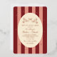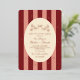 Donnez le ton pour une célébration joyeuse et inoubliable avec cette invitation de mariage ludique mais élégante. Avec ses rayures rouges et roses rousses aux accents d'étoile dorée, ce design d'inspiration rétro apporte une ambiance amusante, cirque-rencontre-romance à votre grand jour. Parfait pour les couples qui veulent que leur papeterie mariage se sente à la fois unique et mémorable, il est idéal pour des célébrations à thème vintage, des mariages de style carnaval, ou simplement une histoire d'amour audacieuse et créative.