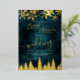 C'est le moment de célébrer votre thème mariage hiver merveilleux avec cette luxueuse feuille d'or flocons de neige étincelles et forêt de pins sur un élégant arrière - plan festif vert foncé aquarelle, avec une typographie de police de script cool moderne avec de la feuille d'or réelle.