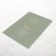Elégante faire-part de mariage minimaliste dans un vert sage doux, accentuée d'une véritable feuille d'or et d'un coeur de corde romantique. Un choix parfait pour les couples qui aiment le style intemporel avec une touche de luxe. Customisez avec vos noms, la date du mariage et les détails de la cérémonie. Idéal pour les mariages modernes ou botaniques.