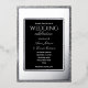 Invitation de mariage élégante, moderne, minimale noir et blanc avec feuille d'or véritable argent et calligraphie simple.