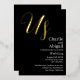Cette élégante faire-part de mariage romantique présente un thème doré et noir. Le titre "Us" est imprimé dans une grande police de caractères en feuille d'or, au-dessus des noms du couple se mariant. Les informations mariages sont imprimées ci-dessous dans une police blanche moderne et sophistiquée sur un arrière - plan noir.
